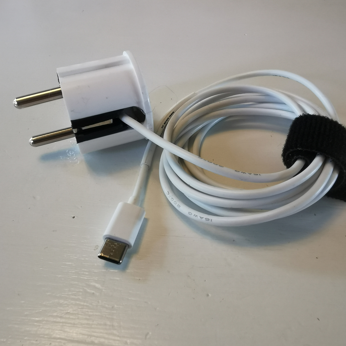 Consists of a grounded plug with silicone inside for extra safety and a 1.8m cable with a USB-C connector on the other end.
